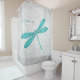 Adicione um toque elegante à sua banheira com uma Cortina de Chá Personalizada Teal Dragonfly. design de cortina de chá apresenta uma libélula colorida, uma vinha branca e macia contra um fundo de damasco verde de cinza clara com uma área para personalizar com seu nome. Itens de presentes adicionais disponíveis com este design, bem como uma variedade de cores.