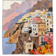 Costa Amalfi, Viagem de Painting Nature Landscape, Verão Romântico Pastel Cênico Colorful Places, Europa Exótica Montanha a Illustração do Oceano de Praia do Vale do Colinas por 83 Laranjas Uma Gokhale.