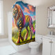 Esta cortina de chá tem uma criatura de fantasia nela.