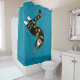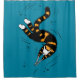 Cortina de chá de gato engraçada com uma ilustração a tinta de uma criatura de gato estranha nadando com enguia como movimentos sobre fundo azul escuro e personalizável. A carne é, de alguma forma, arrancada das suas mãos mostrando o seu esqueleto, mas o animal bonito está no seu estado mais feliz da mente.