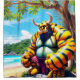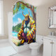 Esta cortina de chá tem uma criatura de troll artístico nela.