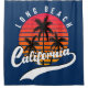 Cortina de chá de Long Beach com um design que apresenta um pôr do sol e palmeiras na cor de fundo personalizável do Old Glory Blue. Este design também tem a Califórnia em uma fonte manuscrita com um glifo de cauda de inchaço para aquele olhar na moda. Esta cortina de chá é só para você se você é de Long Beach ou você pode obter como presente ou lembrança para alguém.