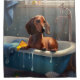 Traga um charme balbucioso para o seu banheiro com esta encantadora cortina de Chá Diversão Dachshund Bathtime! Apresentando um dachshund bonito e brincalhão sentado numa banheira, esta cortina adiciona um toque de diversão e personalidade ao seu espaço.