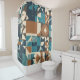 Cortina Para Box Dark Blue, Teal, Brown, and Tan Geometric Pattern