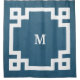 Design monograma com decoração de borda chave grega sobre fundo azul verde