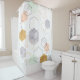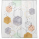Hex Scatter I de Gabrielle McClure. Hexágonos de várias formas e designs espalhados sobre um fundo branco.