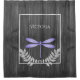 Adicione um toque elegante à sua banheira com uma Cortina de Chá Personalizada Rústica Rúscula Roxa. design de cortina de chá apresenta uma libélula vibrante adornada com uma folhagem delicada contra um fundo de madeira rústica de cinza escura. Itens de presentes adicionais disponíveis com este design, bem como uma variedade de cores.
