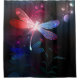 Luminosa, voadora, libélula vermelha, com asas transparentes e detalhadas sobre fundo escuro, noturno, luminoso com plantas tropicais e vagalumes. libélula vermelha.