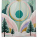 Esta trabalho de arte encantadora transporta-o para uma terra maravilhosa serena de inverno, banhada numa deliciosa paleta de azul pastel, rosa suave, roxo suave e verde sereno, todos acentuados com ouro brilhante. Três árvores charmosas se erguem graciosamente em meio a uma delicada queda de neve, seus ramos levemente deitados com as matizes sonoras. Acima, um sol estilizado, enfeitado com padrões intrincados, lança um brilho quente e caprichoso através do céu, completando esta paisagem mágica e imaginativa de neve. É uma peça que evoca sentimentos de paz, maravilha e sonhos nostálgicos de infância.
