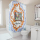 Esta cortina de chuveiro apresenta uma história em quadrinhos original de página única do mundo de Toe's Town.