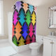 Esta cortina de chá tem um design moderno do século médio de estrelas retrô em tons de vermelho, laranja, amarelo, verde, azul e roxo.