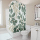 Este design apresenta folhas e galhos de eucalipto sobre fundo branco. O design tem um estilo gráfico plano e um esquema de cores verde e dourado macio. O padrão é composto por folhas e galhos dispostos em uma direção diferente.