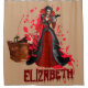 3d personagem de uma bela dama de dracula segurando uma xícara e uma banheira de ouro de bronze.