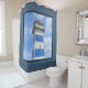 Design com tema náutico com decoração de farol com cor d'água em quadro azul escuro. É possível mudar a cor de fundo e adicionar uma diferente à design com sua escolha.