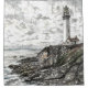 "Farol de ponto pombo" foi criado com caneta e tinta e aquarela e digitalizado.