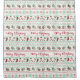 Uma cortina de chá com um padrão repetitivo no fundo, num estilo feio de suéter de Natal. O padrão é composto por meias, bolas de natal, estrelas e flocos de neve. Com a repetição do texto de Feliz Natal em vermelho. Divertido e festivo.