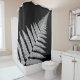 Esta cortina de chá tem uma legal fenda preta e branca nela fotografada.