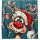 Bring a playful splash of holiday cheer to your bathroom with this illustrated reindeer shower curtain. The warm, hand-painted style reindeer peeks out from a rich teal background, tangled in colorful string lights and wearing a cozy Santa hat — a scene that feels both whimsical and nostalgic. The polyester fabric hangs with a soft drape and dries quickly, so the joyful print stays vibrant through many seasons. Hang it to set a cheerful, storybook mood for holiday mornings, family gatherings during the festive season, or when you want a touch of winter warmth during everyday routines.