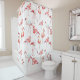 Cortina de chá divertida com flamingos tropicais bonito em fundo branco. Perfeito para sua casa de praia de verão!