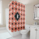 Padrão geométrico floral moderno de branco e preto sobre fundo vermelho de tendência. Uma inicial de monograma branco moldado em quadrado preto branco-bordado está no centro do design. Na moda, design único contemporâneo e pré-disquete! O estilo de fonte e/ou a cor de fundo são facilmente alterados com a ferramenta design. Envie-me um e-mail em beachpausedesigns@gmail.com com perguntas ou solicitações personalizadas.