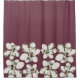 Cortina vermelha de maroon com grandes flores magnólias do sul no fundo. Cor sólida de burgundy ou marrom no topo com uma borda de grandes flores ilustradas ao longo do fundo.