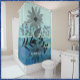 Cortina Para Box Flores Modernas em Fundo Azul Sonhador