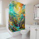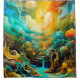 Uma paisagem muito surreal de uma floresta, cascata e pôr do sol.