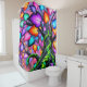 Esta cortina de chá tem um design colorido.