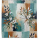 Cortina Para Box Folhas Coloridas Abstrato Floral Teal Blue Rust Ta