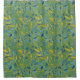 Um belo padrão mostra ramos de folhas em blues e douradas sobre fundo verde, complementando uma variedade de temas de decoração caseira do século médio ao moderno.