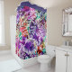 Padrão de folhas de palmeira coloridas e modernas no design do cortinado de chuveiro do banheiro em uma variedade de cores que lhe permite combiná-lo com a sua decoração com estilo ou usá-lo para dar um toque de cor no seu banheiro remodelado.