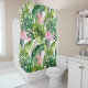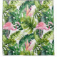 O padrão tropical de diversão em negrito apresenta flamingos rosa-d'água, pássaro da flor do paraíso e folhas grandes