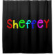 Sheffey Bold Rainbow Fala 9711 Imagem de Cortina de Chá dando a esta cortina de chá de fontes coloridas primárias brilhante mostrada em um fundo negro e ousado para qualquer um com o sobrenome de Sheffey. Especialmente excelente em uma sala de dormitório ou em um centro de assistência. entre em contato comigo para usar um nome diferente em celeste@khoncepts.com #sheffey