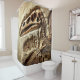Esta cortina de chá tem um fóssil de pássaros nela.