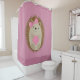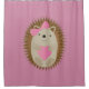 Uma linda garota de desenho animado, ouriço, abraçando uma cortina de chá rosa.