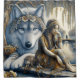 Por um lago tranquilo, uma indiana nativa se senta profundamente no pensamento, enfeitiçada em traje tradicional. Ao lado dela, um lobo magnífico vigia-a. O sereno que os rodeia e o vínculo entre eles evocam um sentimento de paz e uma ligação eterno com a natureza.