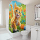 Um adorável gatinho laranja tabby brincando em um jardim de flores com libélulas coloridas.