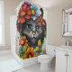 Cortina Para Box Gato Feliz Com Olhos Azuis Cercados Por Flores