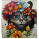 Gato Feliz Com Olhos Azuis Cercados Por Flores. Pode ser personalizado e personalizado.