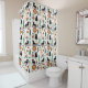 Meio século Cortina de chá moderna com gatos pretos, tartaruga e abstratos de laranja folhas de plantas.