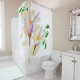 Este trabalho de arte de cortina de chá apresenta delicados elementos florais semelhantes a croco, emoldurados por veias beges e vinhas verdes, com folhas brancas translúcidas acrescentando profundidade e textura contra um fundo de linhas concêntricas, em forma de quadrado, criando um contraste elegante.