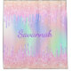 Um fundo holográfico de tendência, colorido, com cores pastel unicórnio e arco-íris, cor rosa, roxo, rosa, verde-menta. Decorado com pingos de brilho falso em ouro rosa, rosa e roxo. Personalize e adicione um nome, escrito com um script de estilo manuscrito, entre elas, moderno. Letras cor púrpura.