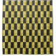 Abstract graphic of geometric design, displays textured, gold panels, shaded with brown, yellow, and white-layered with panels of black, and digitally, arranged in a checkerboard pattern.