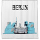 Cortina de Chá do Skyline de Berlim. Um legal design com a linha do horizonte de Berlim, a Capital Alemã, com um mural de arte de rua de um carro alemão oriental quebrando o muro.