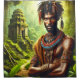 Esta cortina de chá tem um guerreiro nela representado.
