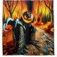 Esta cortina de chá tem um homem de abóbora assustador nela.