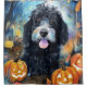 Cortina Para Box Halloween Bernedoodle Com Pumpkins Assustado