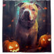 Cortina Para Box Halloween Pitbull Com Pumpkins Assustado