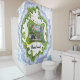 Esta cortina de chuveiro apresenta uma história em quadrinhos original de página única do mundo de Toe's Town.