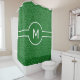 Torne o seu banheiro único com esta cortina de chá monograma com um impressão geométrico ousado e moderno de hexágonos em três diferentes tons de verde.